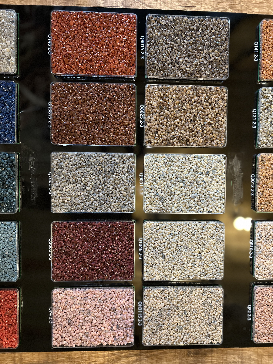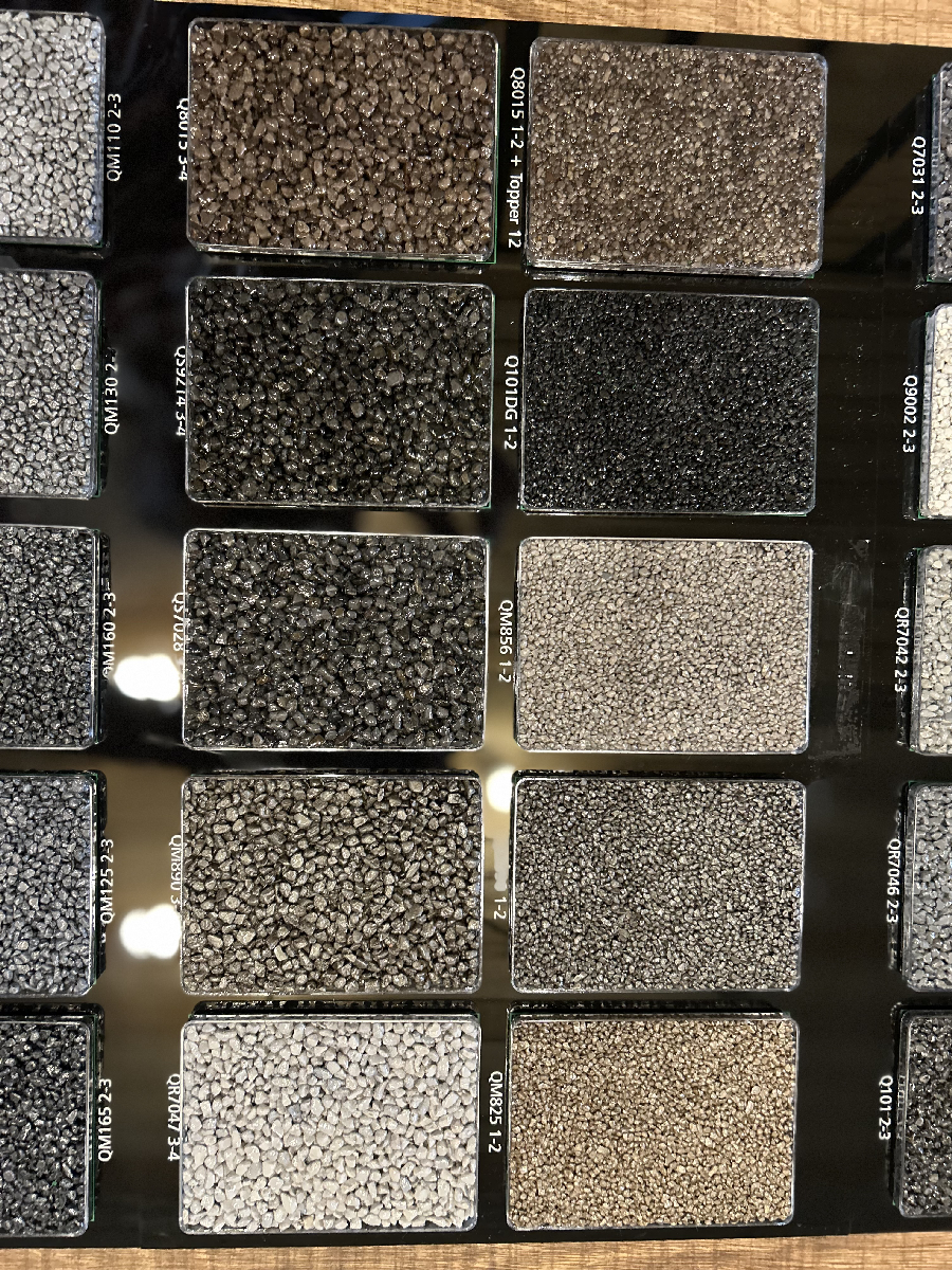 Ces granulats peuvent être intégrés dans divers éléments décoratifs tels que les revêtements de sol, les plans de travail de cuisine, les parements muraux, voire même dans la composition de mobiliers. Ces sols en mosaïque aux motifs uniques, confère une élégance sophistiquée à tout espace, que ce soit une résidence privée, un restaurant chic ou un hôtel prestigieux.